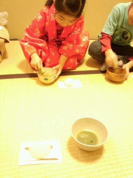 子ども達と今年初のお茶会ごっこをしました。 初釜の時に必ず用意する「花びら餅」を食べました。