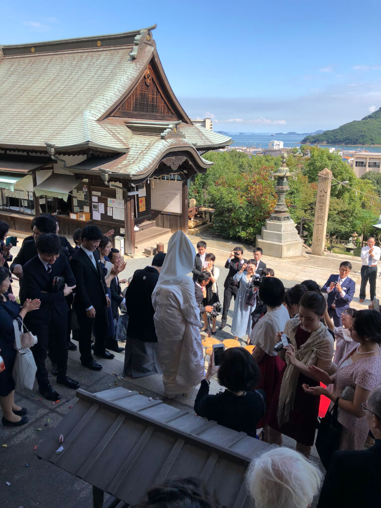 結婚式をやった場所は、福山市の鞆の浦という所です。