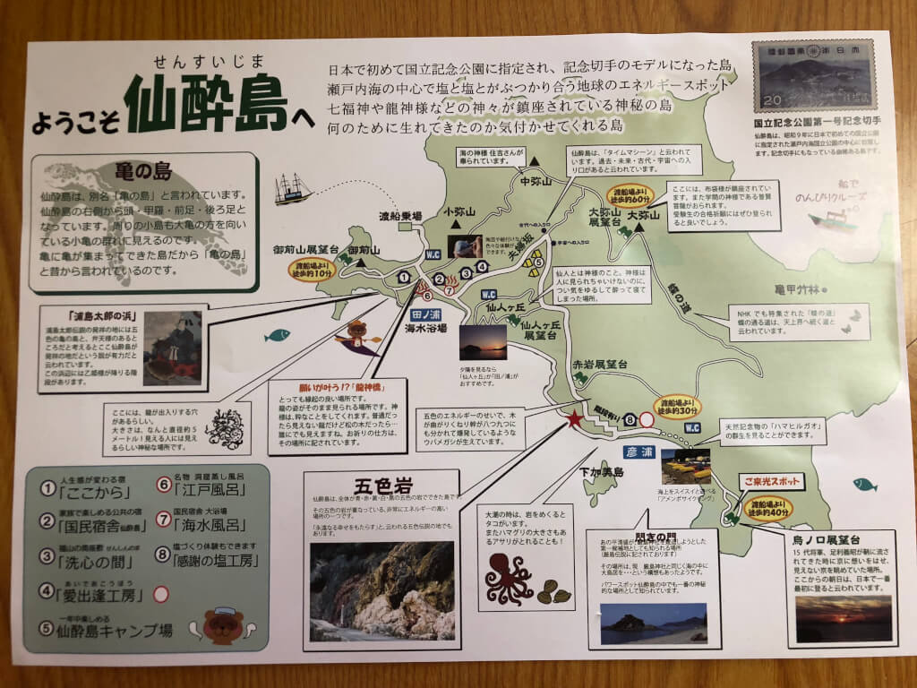 調べているうちに、船で渡って五分くらいの仙酔島という島が、エネルギーが高そうな感じがしたので、島にある国民宿舎に泊りました。