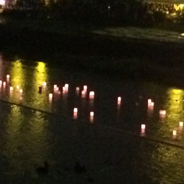 そして、渡月橋の上に移動して灯篭流しを見ました。