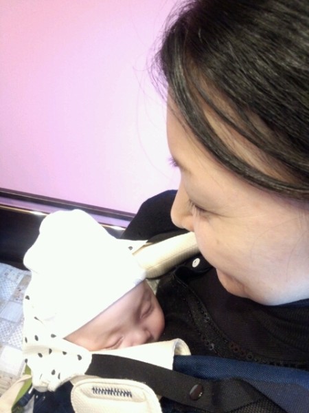 先日、双子ちゃんを出産して、1人を抱っこして連れて来てくれました