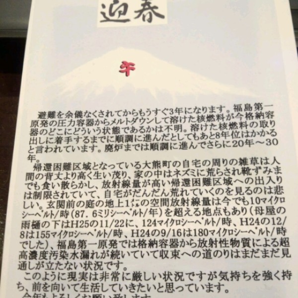 今日は、叔父から来た年賀状をそのまま転記いたします。