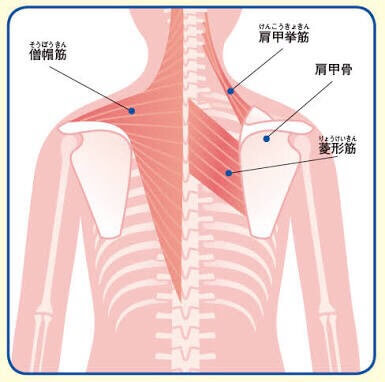 ここで注目してもらいたいのが、肩甲骨は筋肉だけで胴体とつながっている点です。