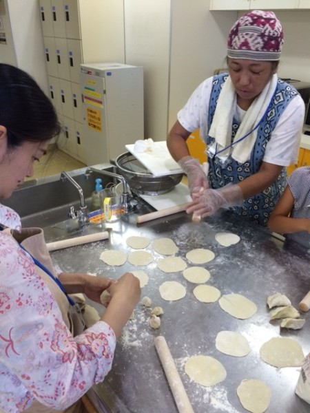 いつも精進料理を教わっているゆみ先生のお知り合いの方で、本場、中国で餃子作りをやってきた方に、皮作りを教わる事が出来ました。
