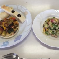 今日は、精進料理教室を開催しました(*^_^*) 今日の出来上がりはこれ! オリーブのフォカッチャ ラタトゥイユとクスクスのセルクル キヌアとスーパースプラウトのサラダ バナナのアジアンフリット キヌアのサ …